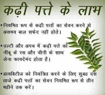 - कढ़ी पत्ता पेन्क्रीआज़ के बीटा सेल्स को एक्टिवेट कर मधुमेह को नियंत्रित करता है |