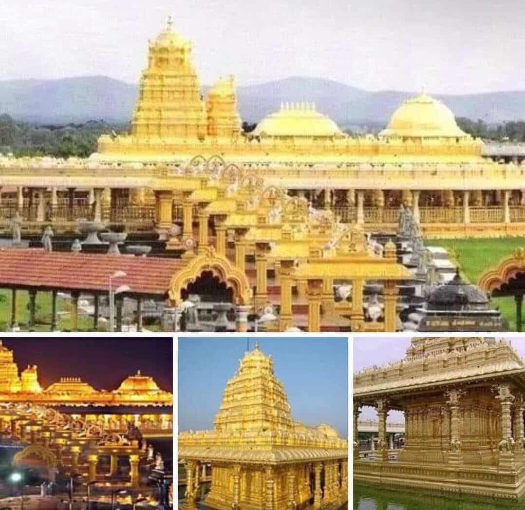 तमिलनाडु के वेल्लोर नगर के मलाईकोड़ी पहाड़ों पर स्थित महालक्ष्मी मंदिर 15 हजार किलो सोने से बना है। यह मंदिर 100 एकड़ से ज़्यादा क्षेत्र में फैला है और इस महालक्ष्मी मंदिर में हर एक कलाकृति हाथों से बनाई गई है।