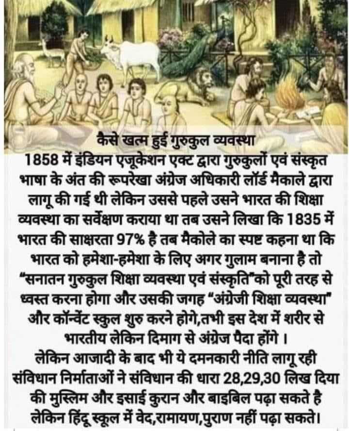 ब्राह्मणों_ने_हमें पढ़ने नहीं दिया यह बात बताने वाले महान इतिहासकार हमें यह नहीं बताते कि सन 1835 तक भारत में 700000 गुरुकुल थे इसका पूरा डॉक्यूमेंट Indian house में मिलेगा ।